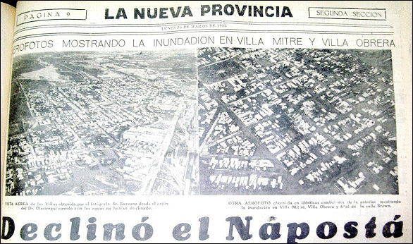 En las imágenes se muestran las fotos de la inundación publicadas por el diario La Nueva Provincia en su edición del 20 de marzo de 1933.